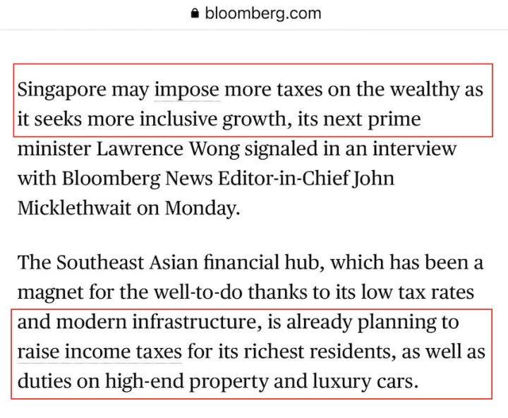 前几天呢,有关新加坡要加税的消息漫天飞,甚至有的还声称新加坡要对富人“关门打狗”?咱也不知道这消息是谁传出来的,也不知有没有引起恐慌。